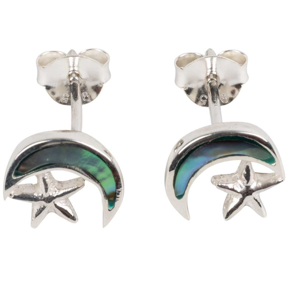 STERLING SILVER MOON & STAR ABALONE EARRINGS