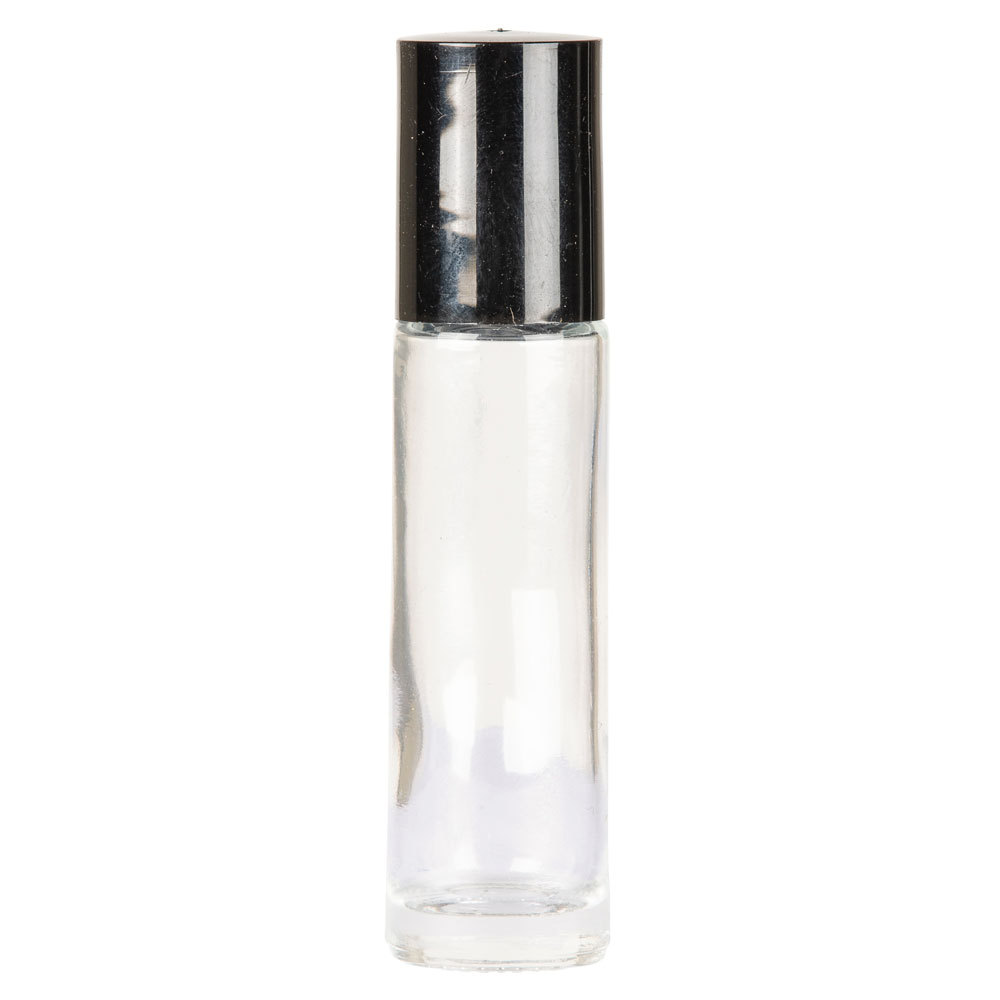 Bottles come with black cap and plastic roller ball and housing