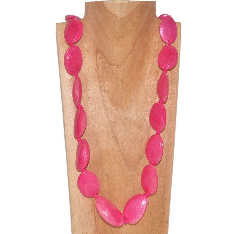 34" DARK PINK ABALONE SHELL & RIBBON NECKLACE