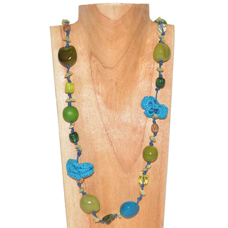 40" BLUE FLOWER CROCHET NECKLACE