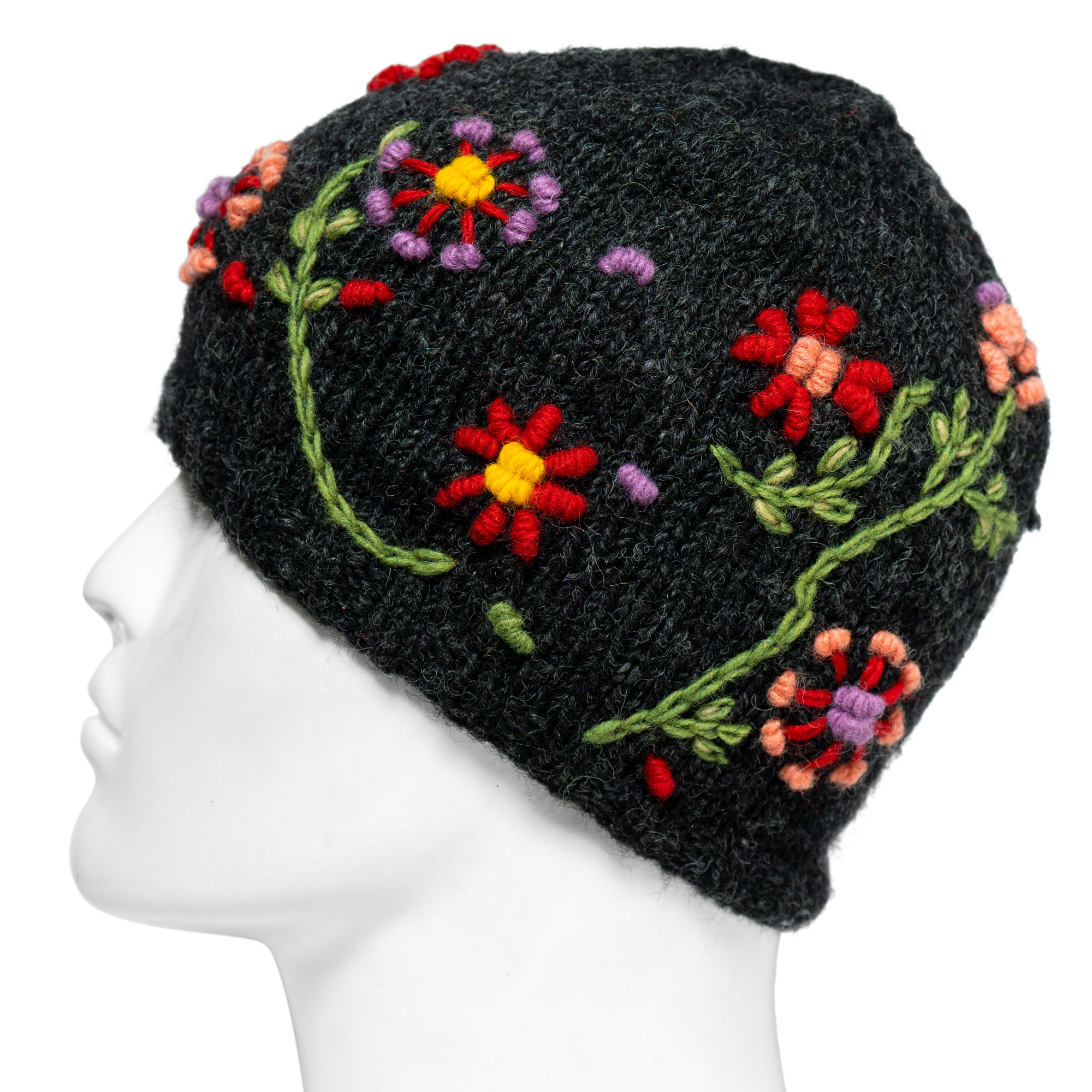 CHARCOAL COLOR MULTI COLOR FLORAL CROCHET HAT