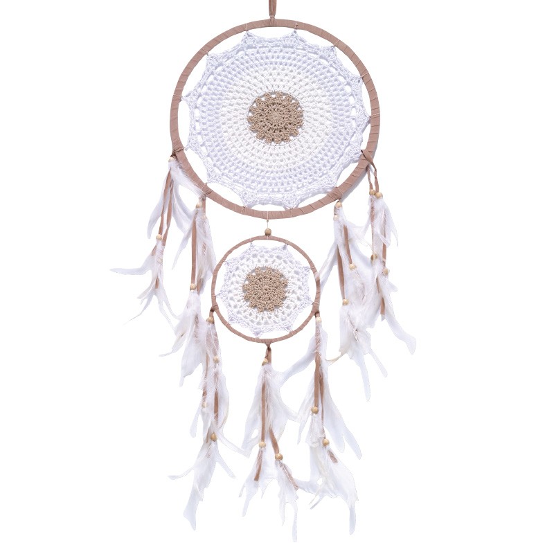BROWN SUEDE AND WHITE CROCHET DREAMCATCHER