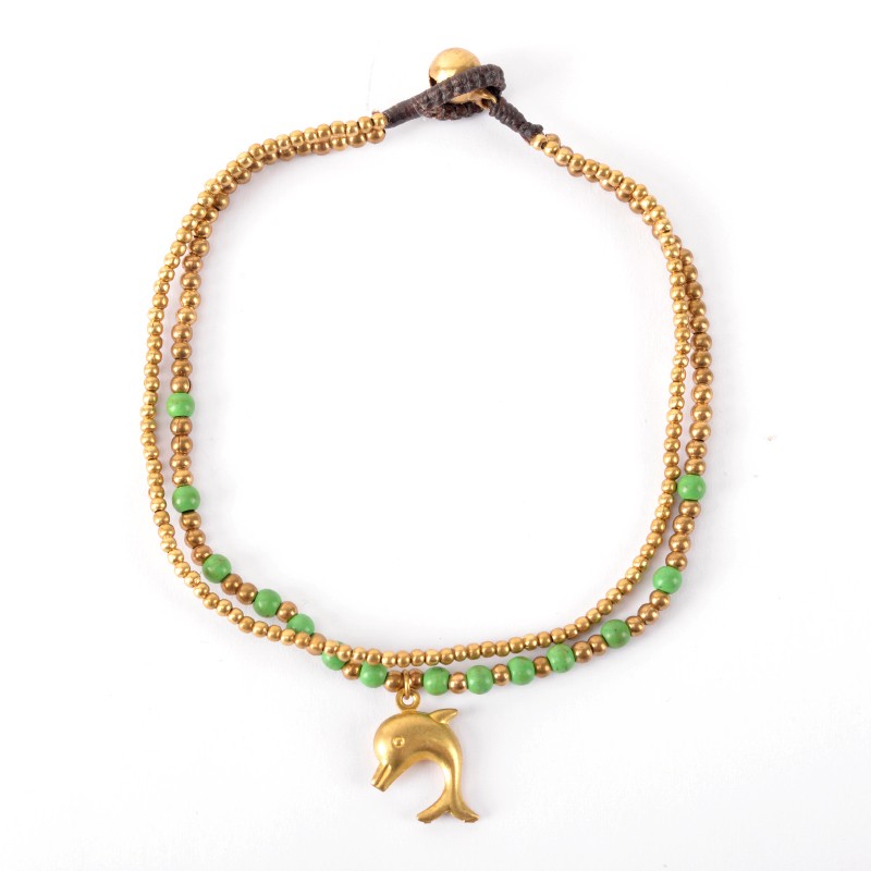 DOUBLE STRAND BEADED DOLPHIN TURQUOISE ANKLE
