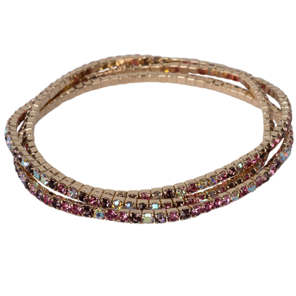 GOLD & BROWN/PINK/OPAL RHINESTONE STRETCH BRACELET