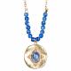 GOLD TONES NECKLACE WITH LAPIS BEADS AND PENDANT