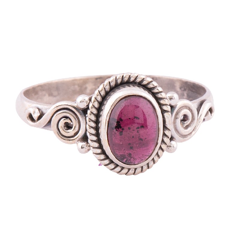 OVAL LEAF SIDE GARNET RING
