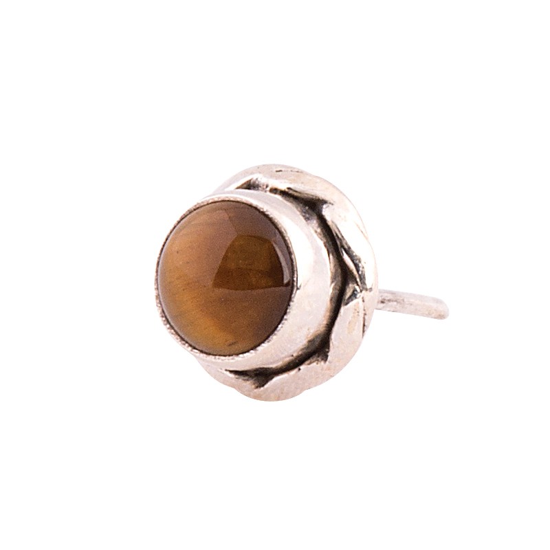 Sterling Silver with .25", genuine, tiger eye gemstone