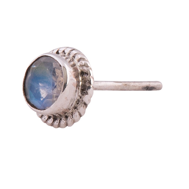 Sterling Silver with .25", genuine, rainbow moonstone gemstone
