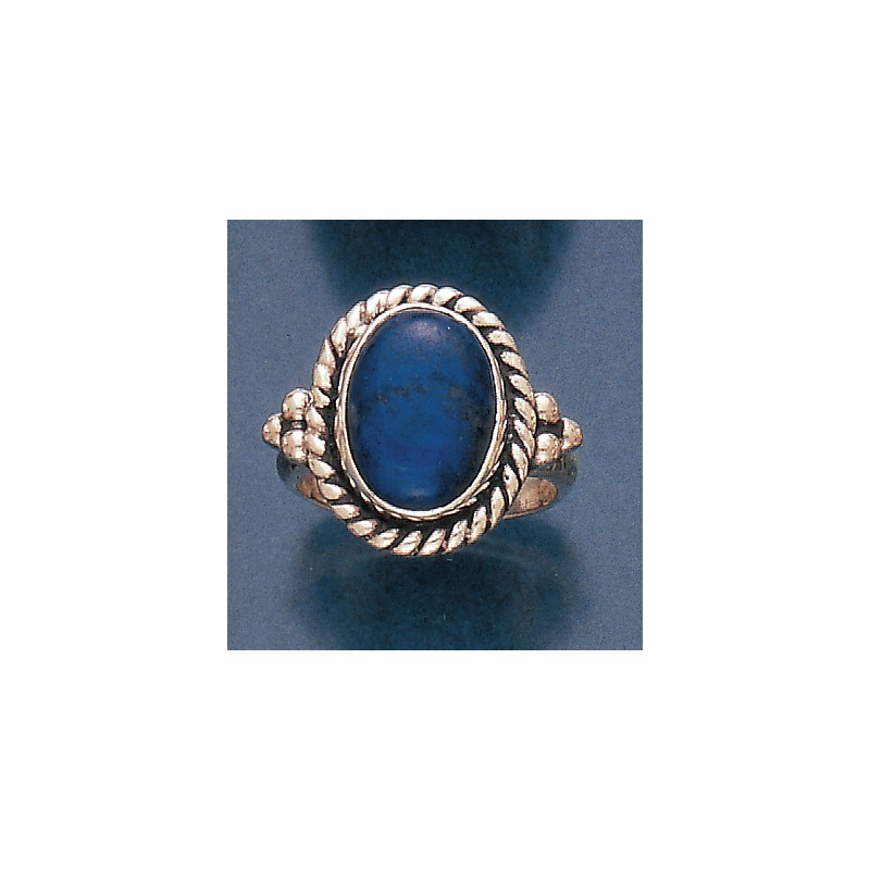 STERLING SILVER OVAL LAPIS RING WITH ROPE DETAILING