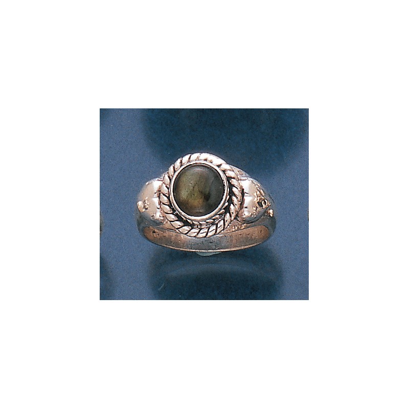 STERLING SILVER CIRCLE LABRADORITE RING WITH FLOURISH