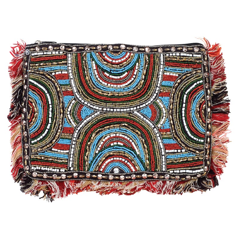 MULTI COLOR HALF CIRCLES BEADED CLUTCH