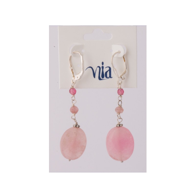 SILVER SHORT DANGLE LIGHT PINK STONE EARRING