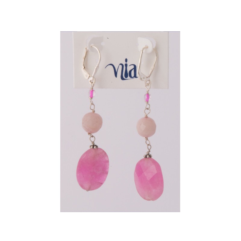 SILVER SHORT DANGLE HOT PINK STONE EARRING