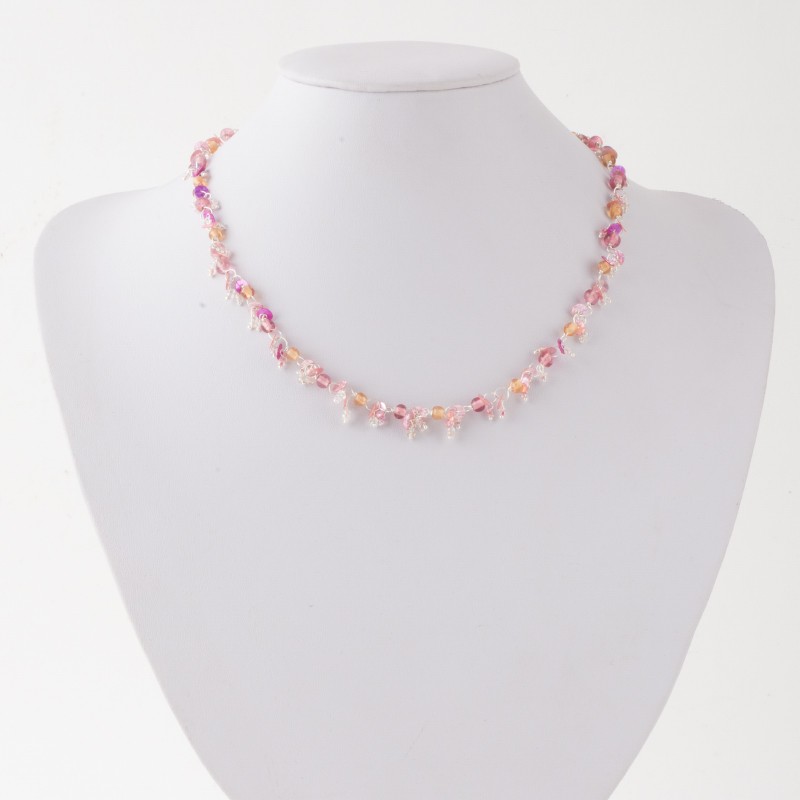PINK SEQUIN DANGLE BEAD NECKLACE