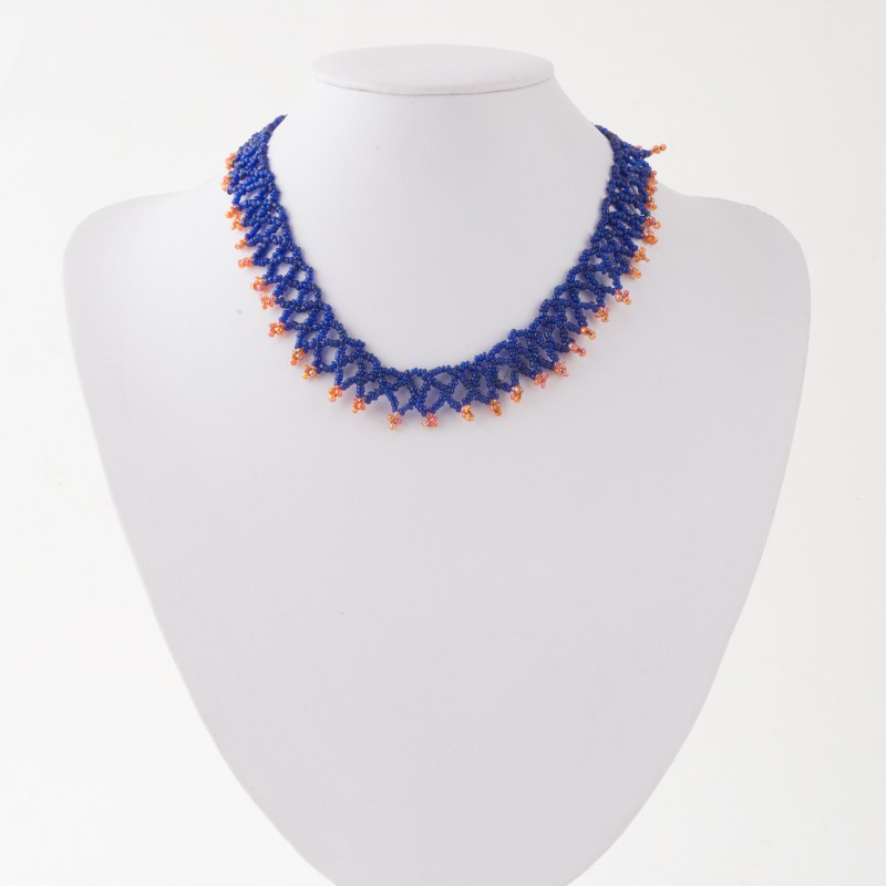 BLUE AND PINK BEADED CHOKER NECKLACE