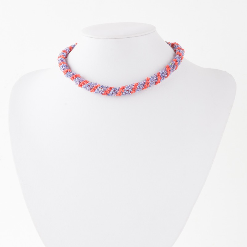 ORANGE AND VIOLET BEADED ROPE CHOKER NECKLACE