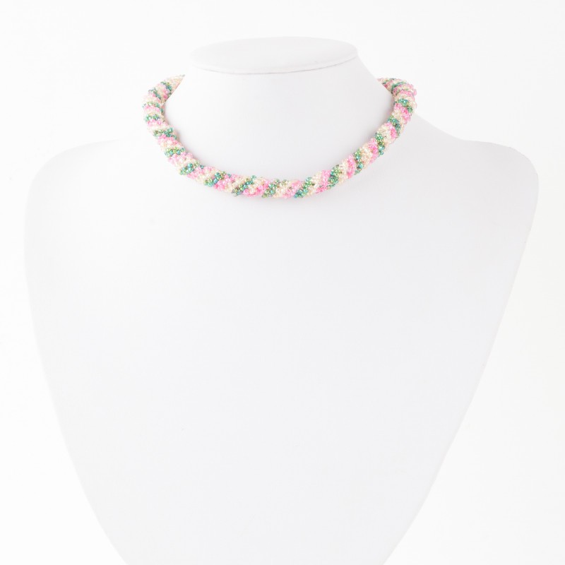 PINK AND GREEN BEADED ROPE CHOKER NECKLACE
