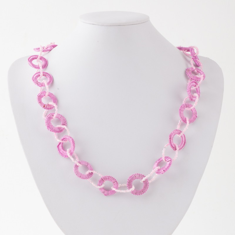 LILAC FABRIC WRAP CIRCLE AND BEAD NECKLACE
