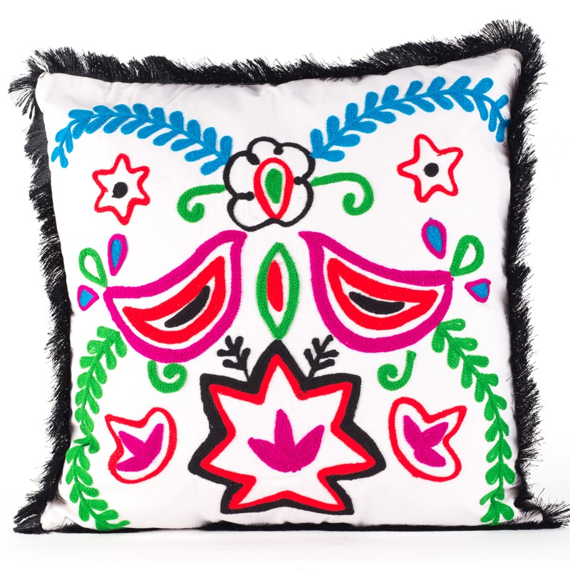BLACK,WHITE, MULTICOLOR FRINGE PILLOW