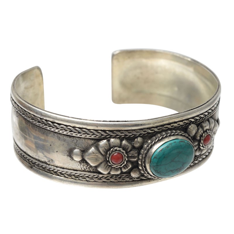 SILVER TURQUOISE LEAF CUFF BRACELET
