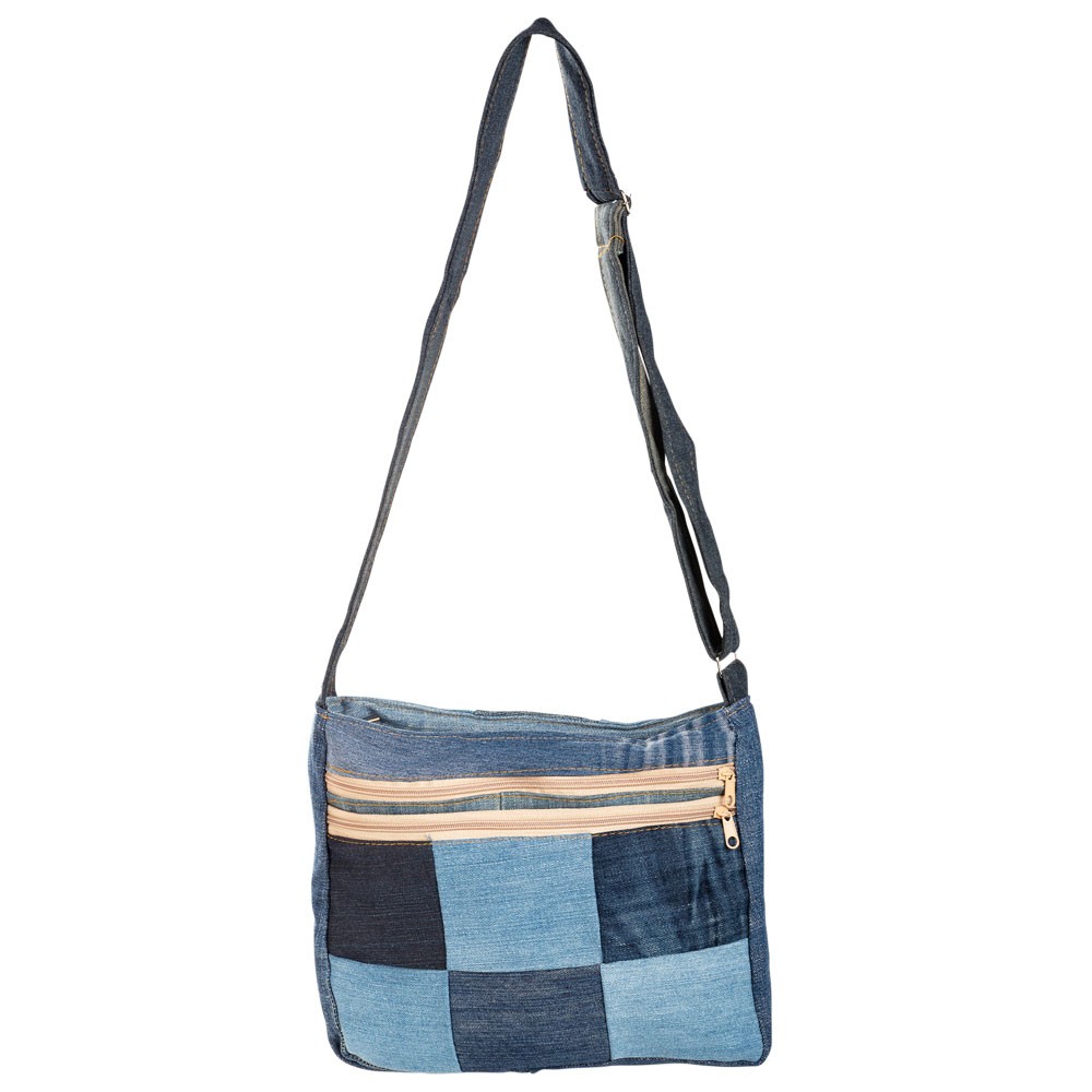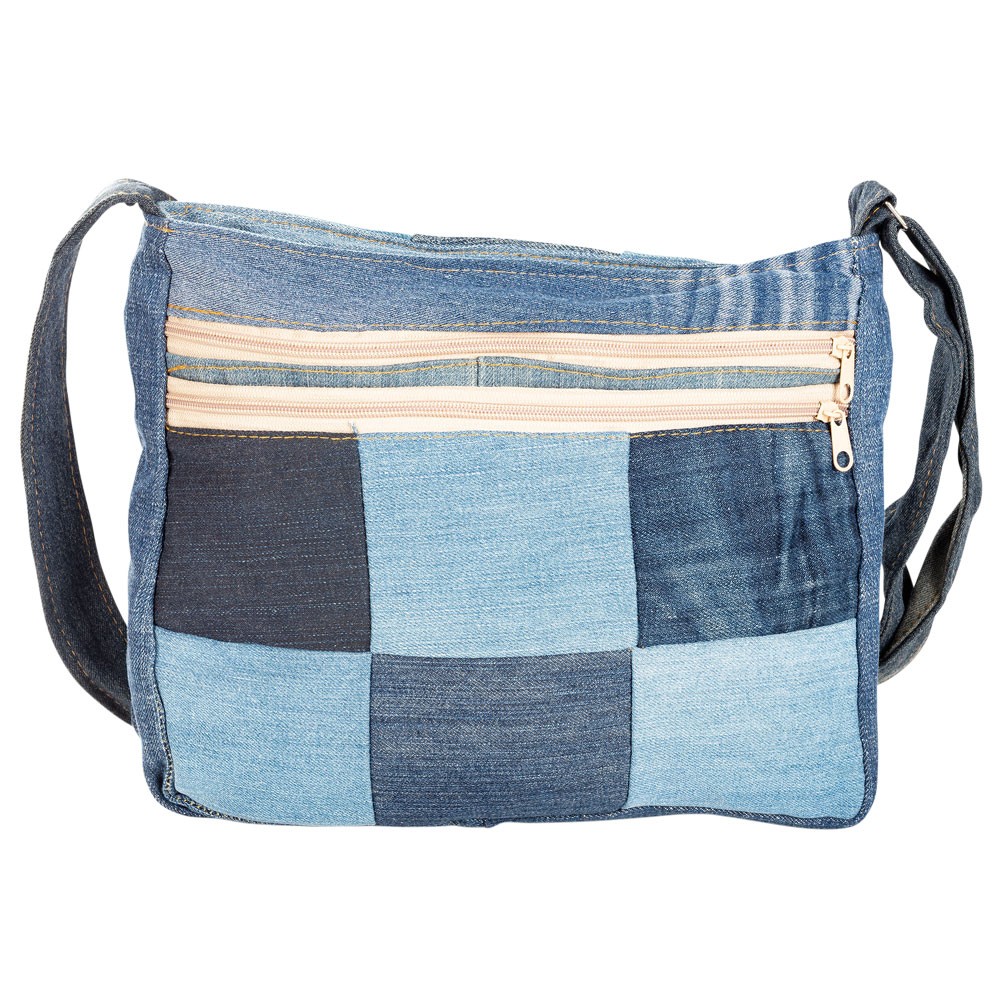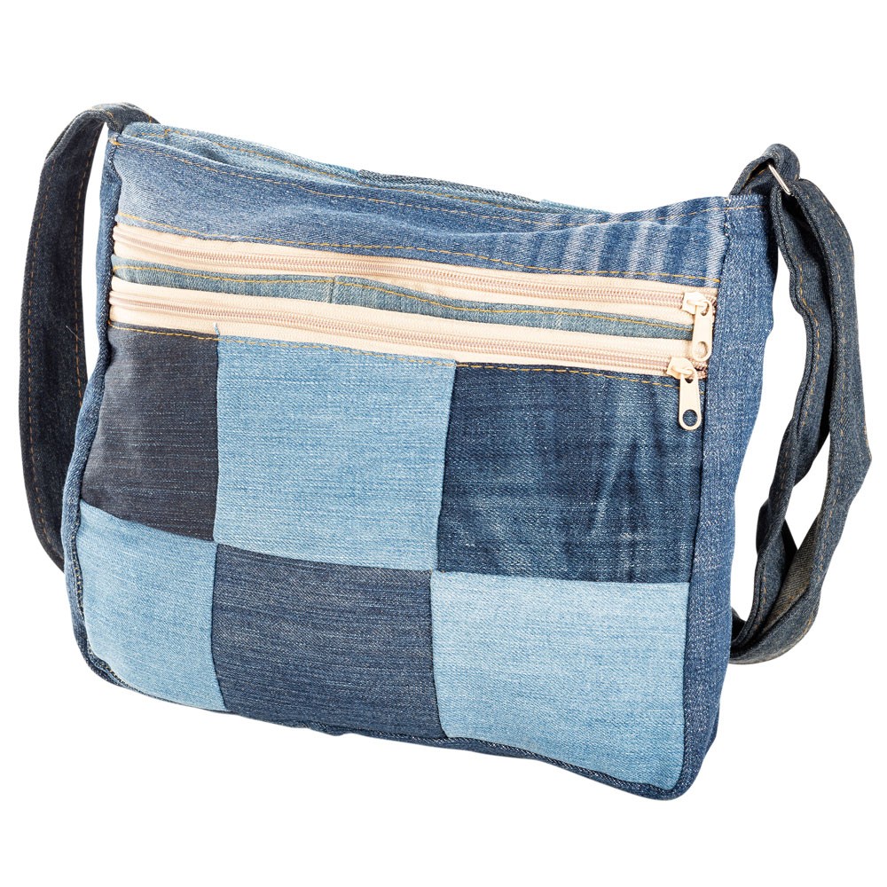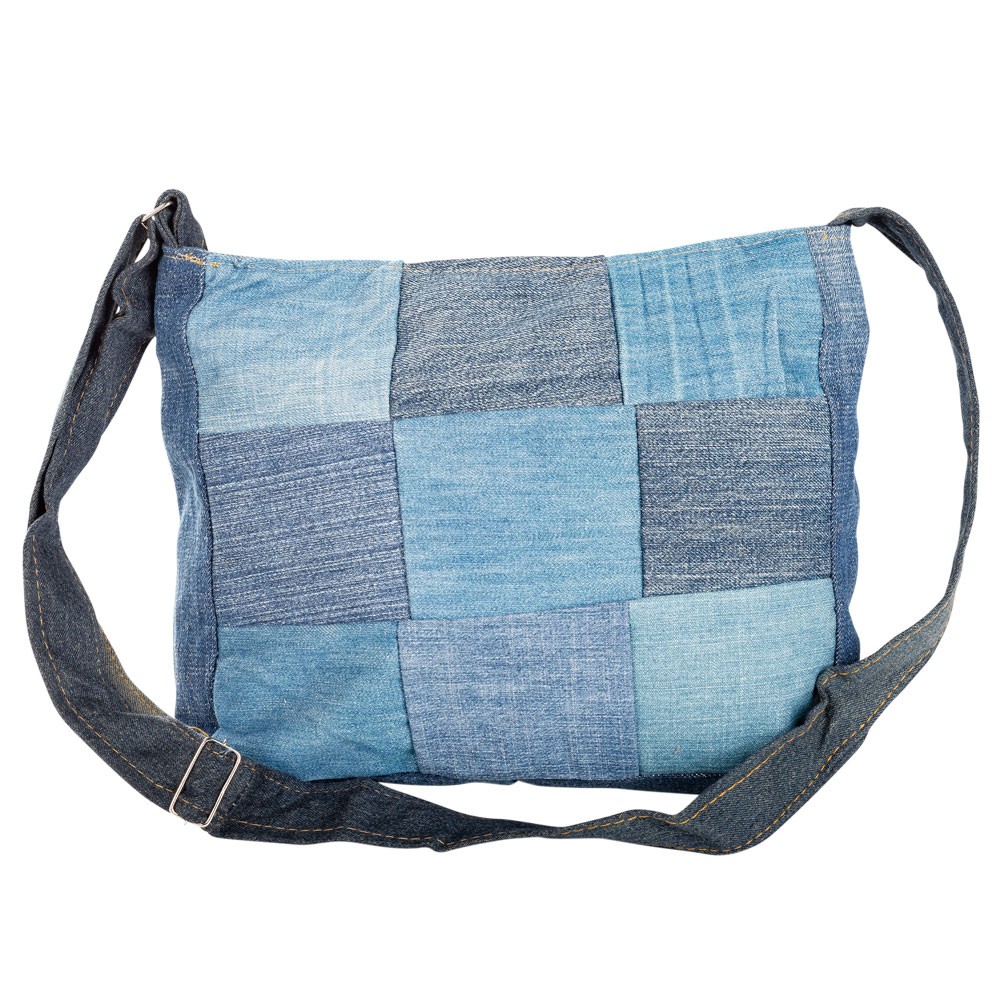 SMALL RECYCLED JEAN SHOULDER BAG WITH POCKETS
