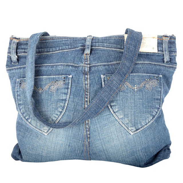 RECYCLED JEAN TOTE BAG WITH ZIPPER CLOSURE