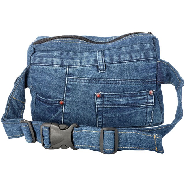 RECYCLED JEAN FANNY PACK WITH OUTSIDE POCKET
