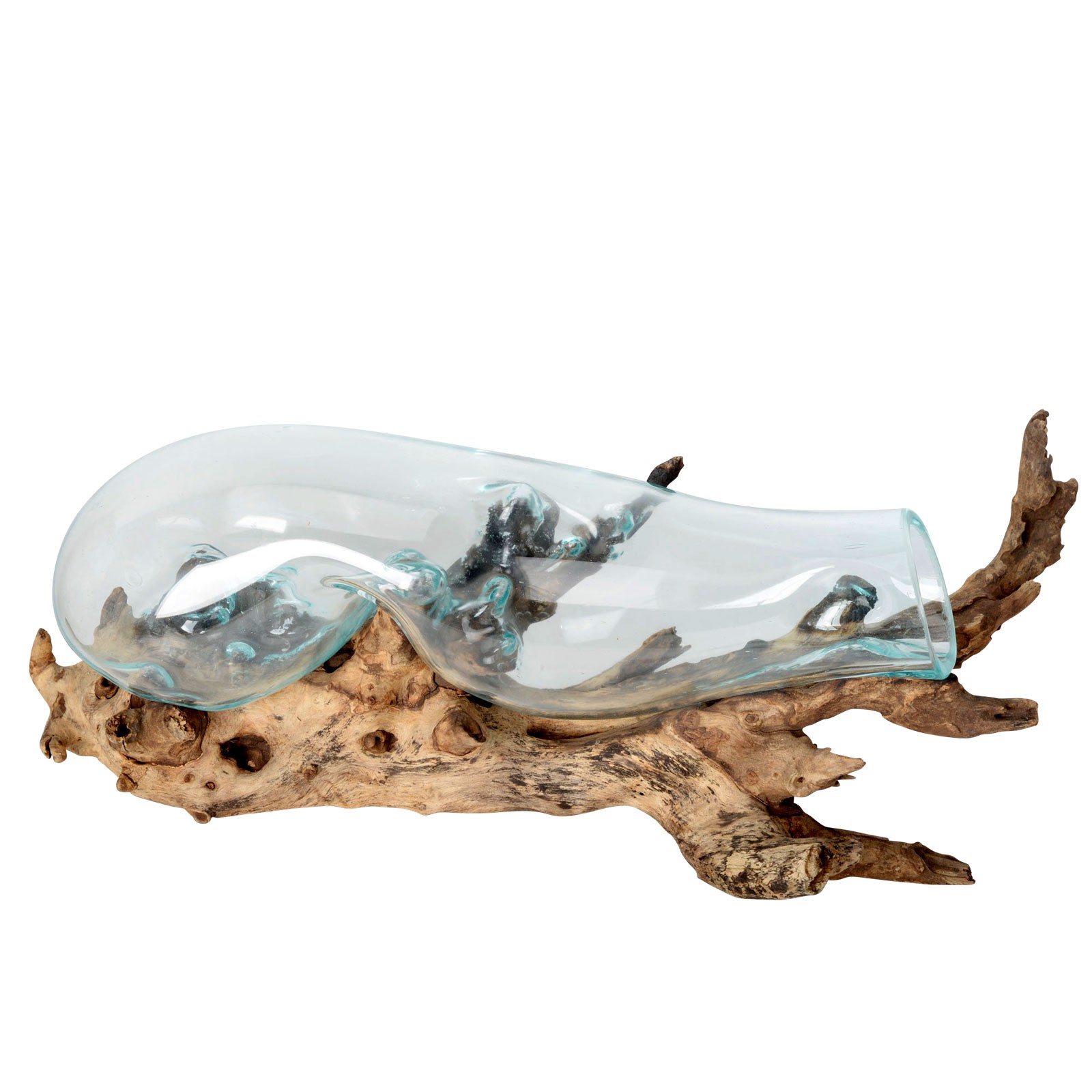 LARGE MOLTEN GLASS BOTTLE IN NATURAL WOOD