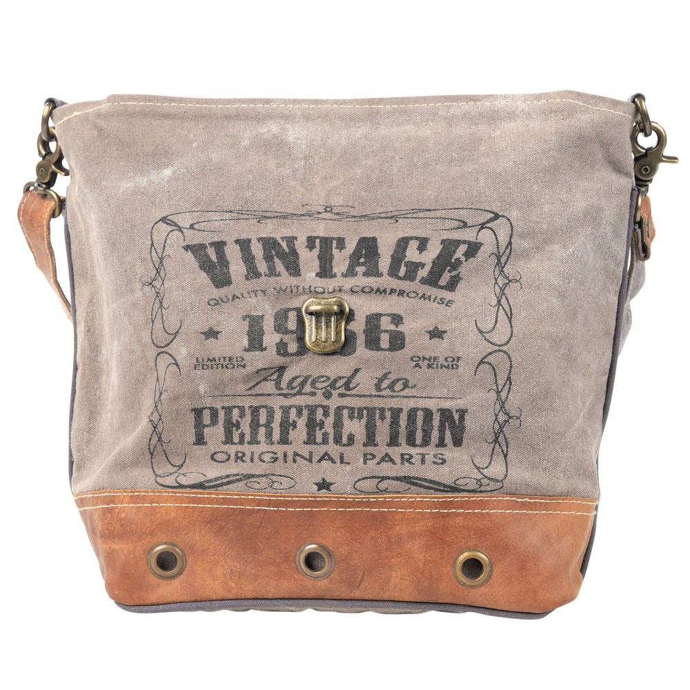 VINTAGE 1986 CANVAS SHOULDER BAG WITH LEATHER TRIM AND FLAP