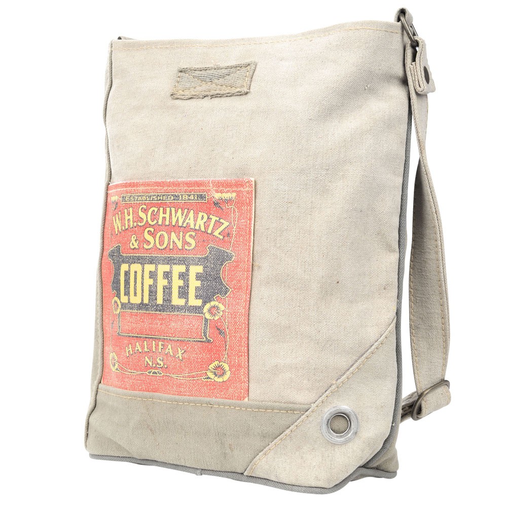 COFFEE PRINT CANVAS CROSSBODY BAG WITH FRONT AND BACK POCKET