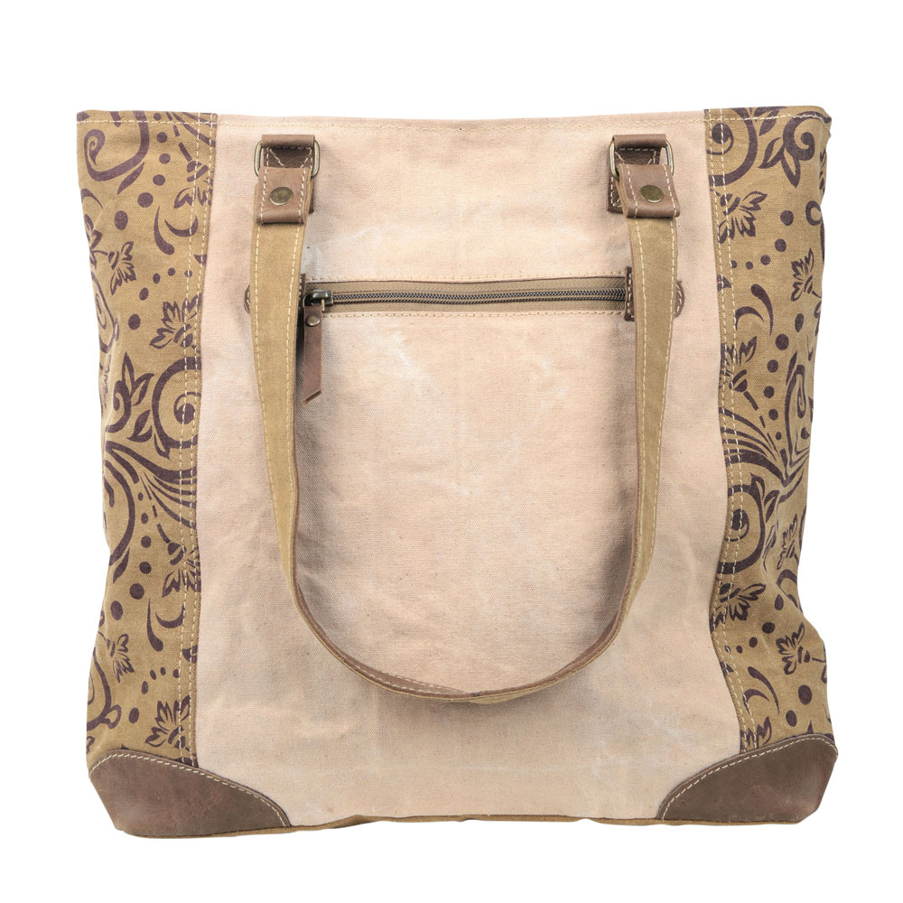 VINTAGE FLOWER WITH LARGE FRONT POCKET CANVAS TOTE