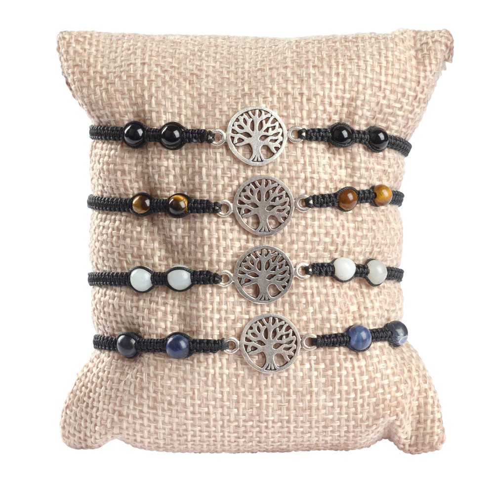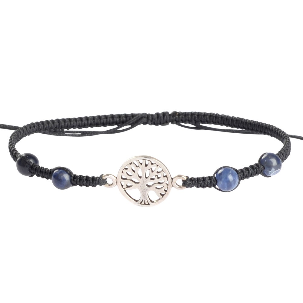 SILVER TREE OF LIFE PULL TIE BRACELET WITH BEADS