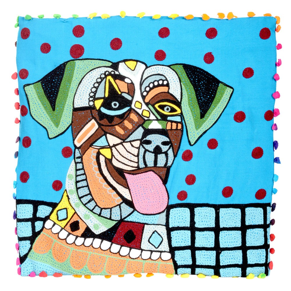 Hand embroidered cotton pillow