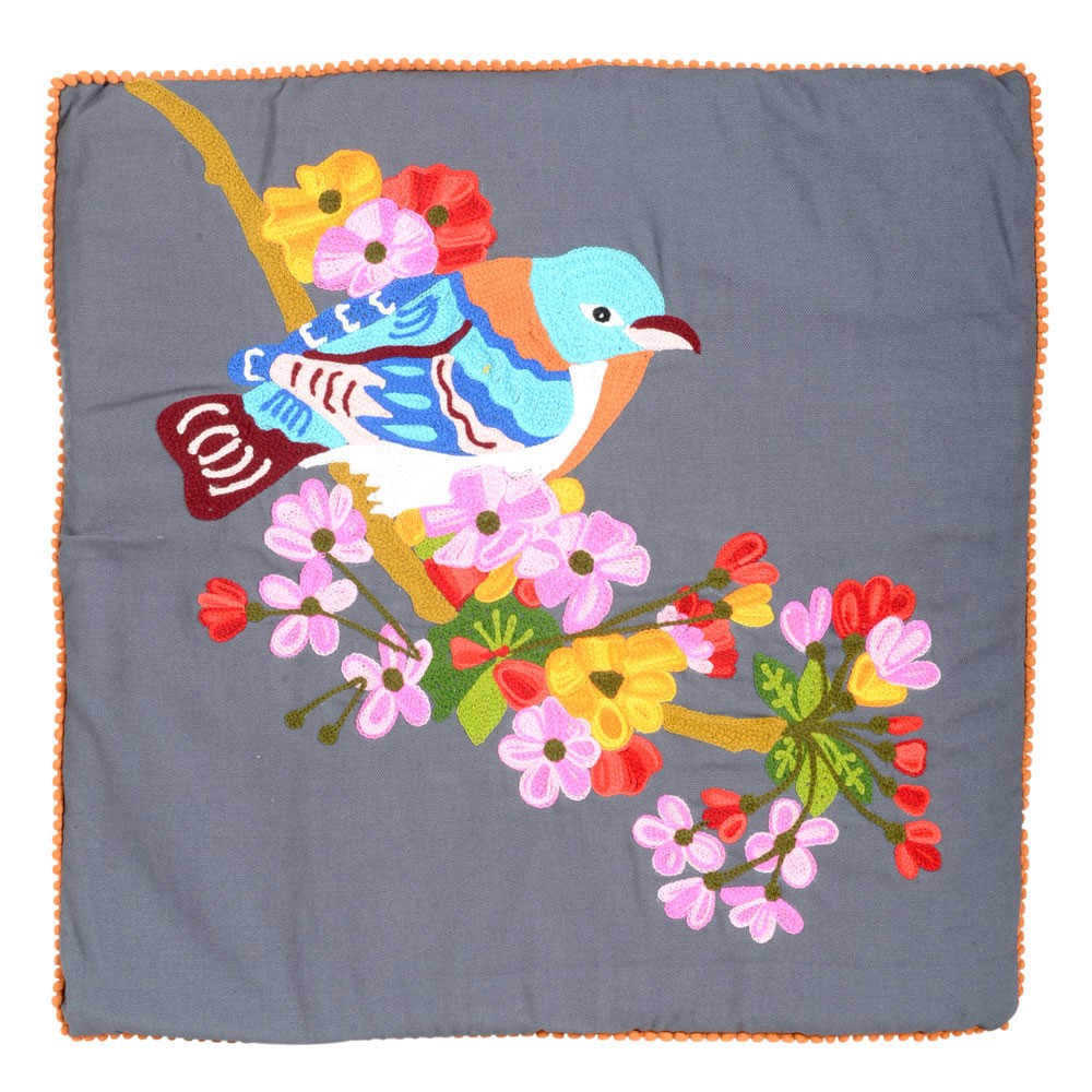 GRAY BIRD SITTING ON BRANCH PILLOW