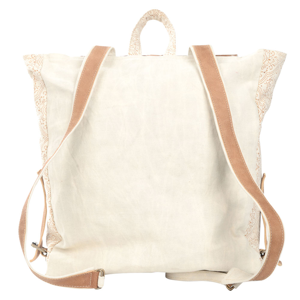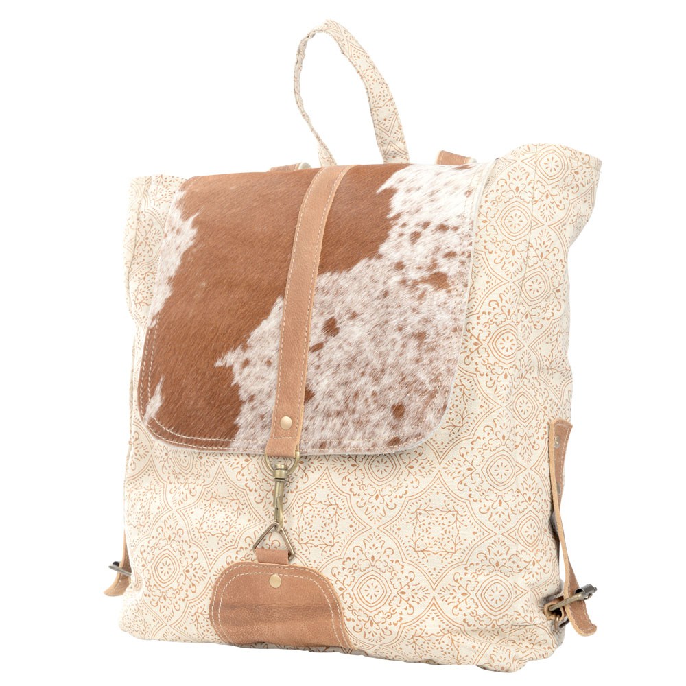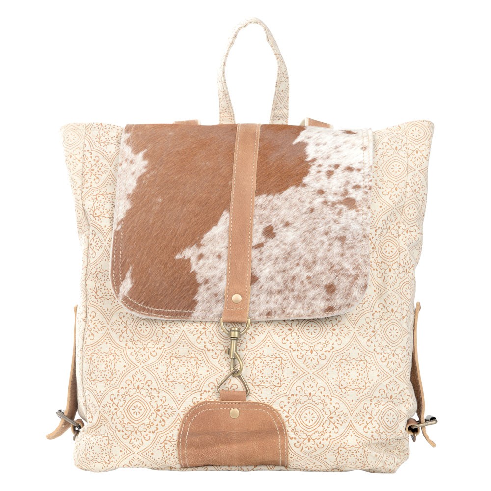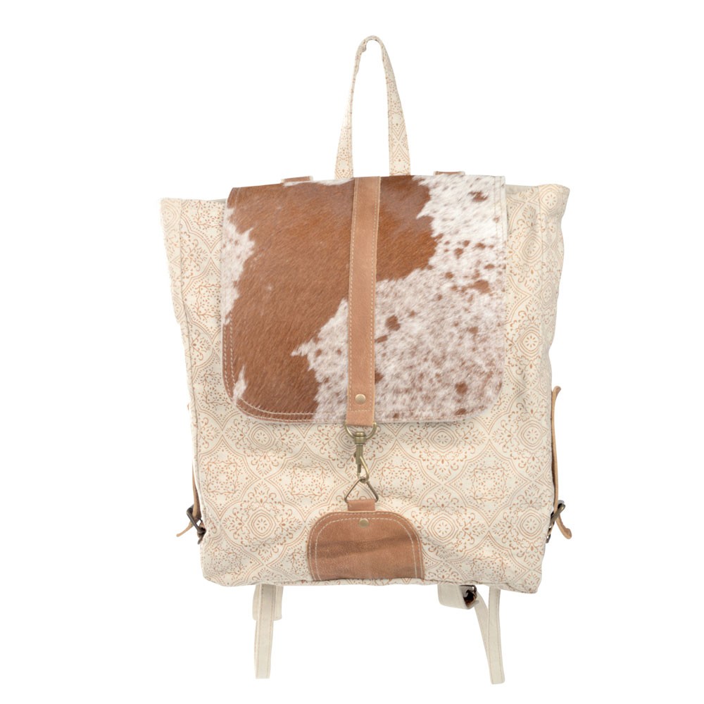 CREAM BACKPACK WITH COWHIDE FLAP