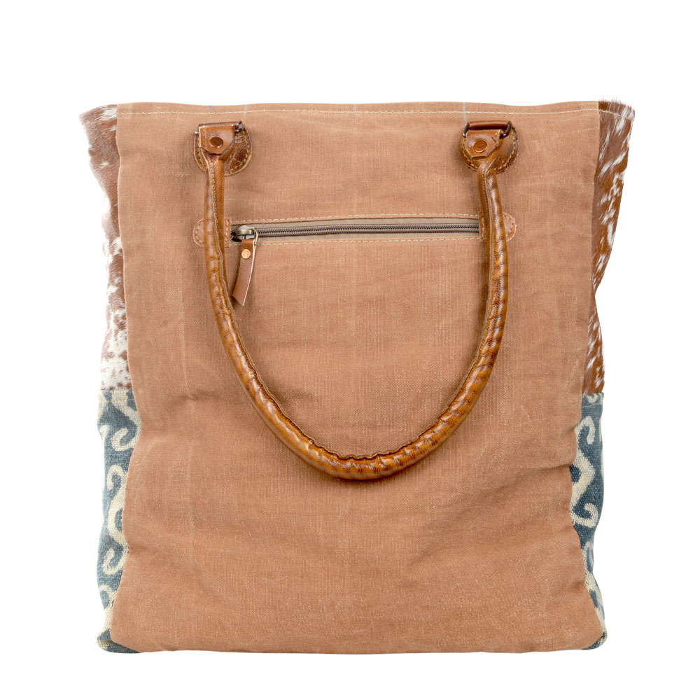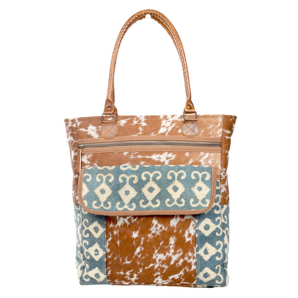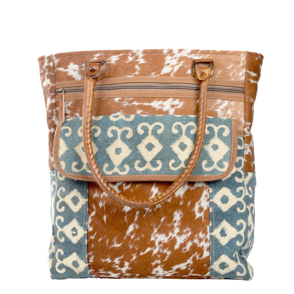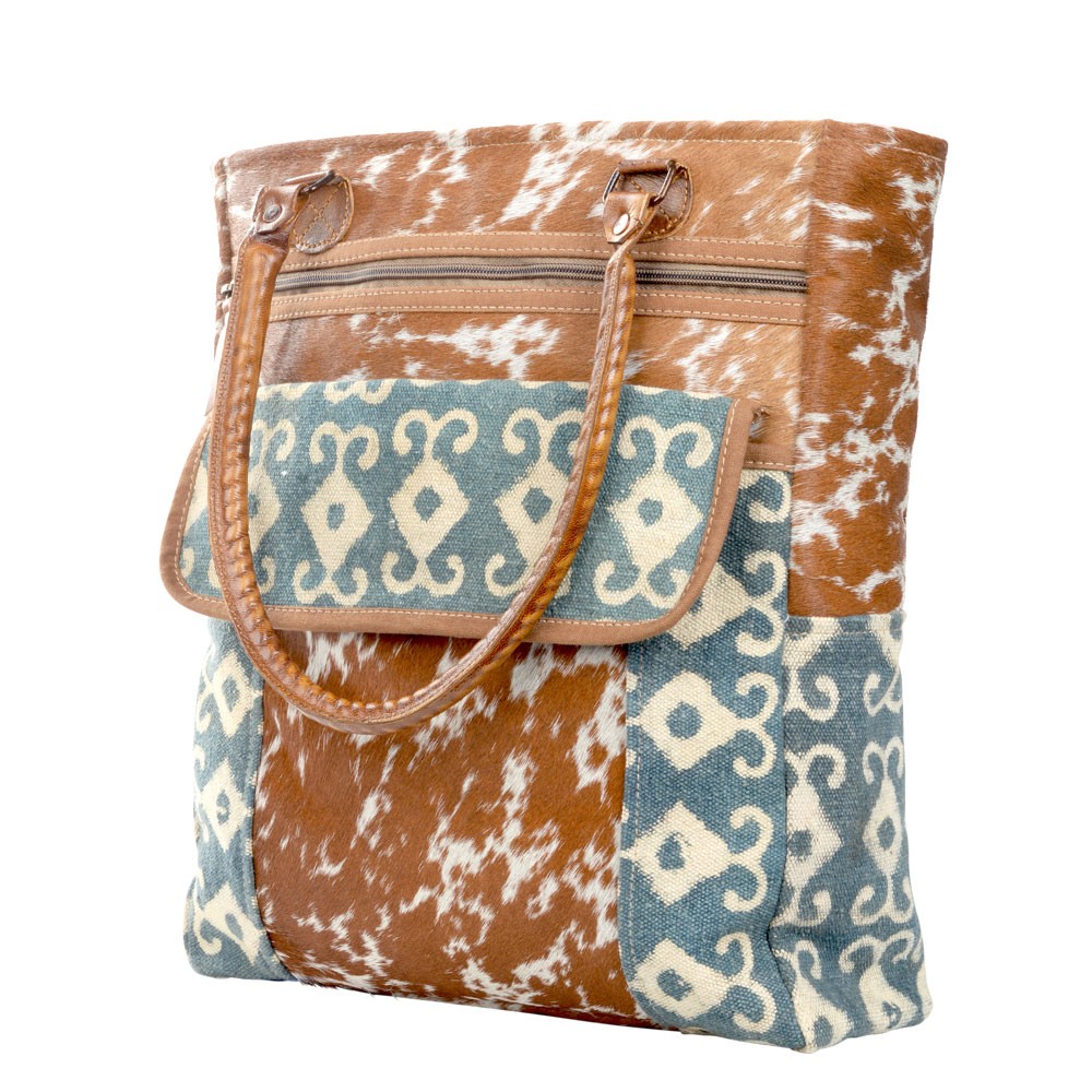 TEAL AND BROWN TOTE BAG WITH COWHIDE
