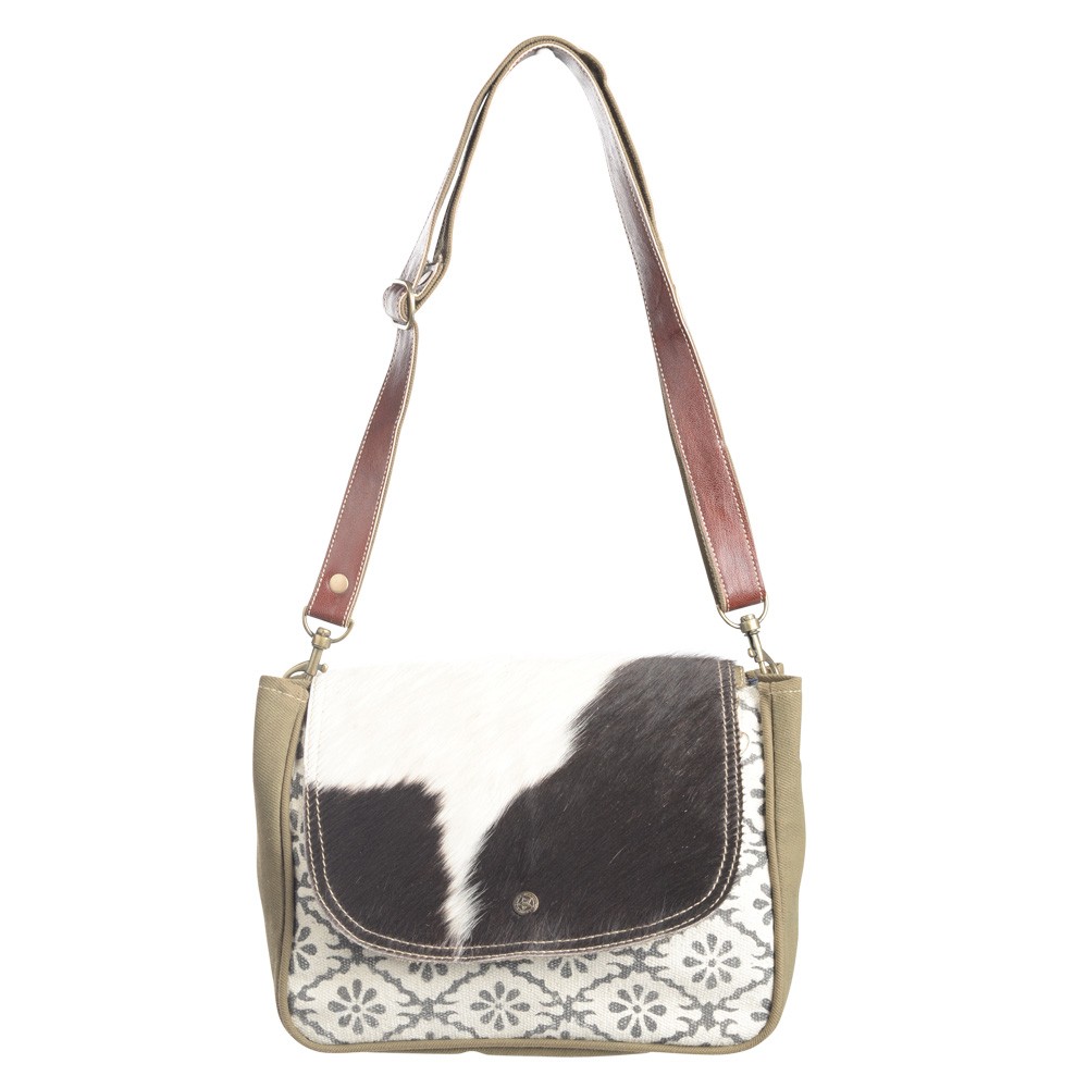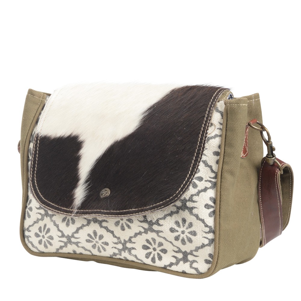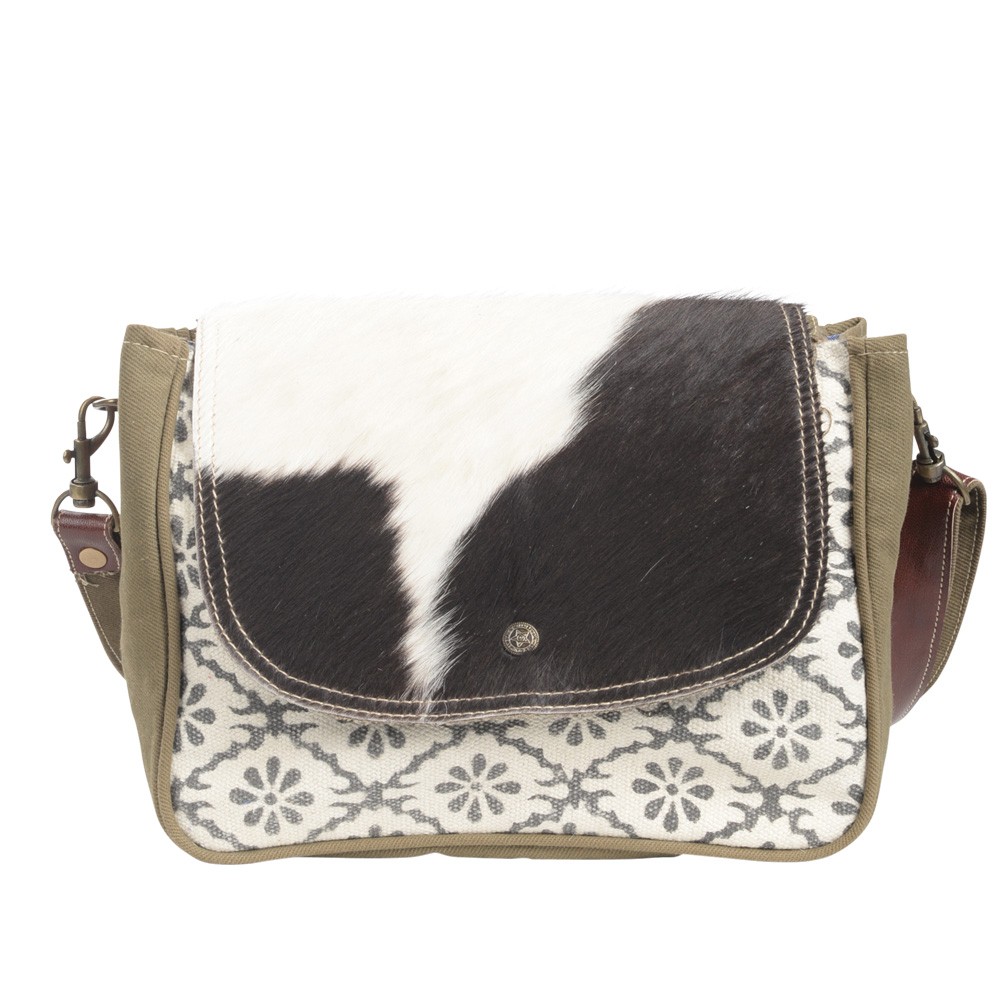 FLOWER PATTERN RECYCLED RUG WITH COWHIDE CROSSBODY