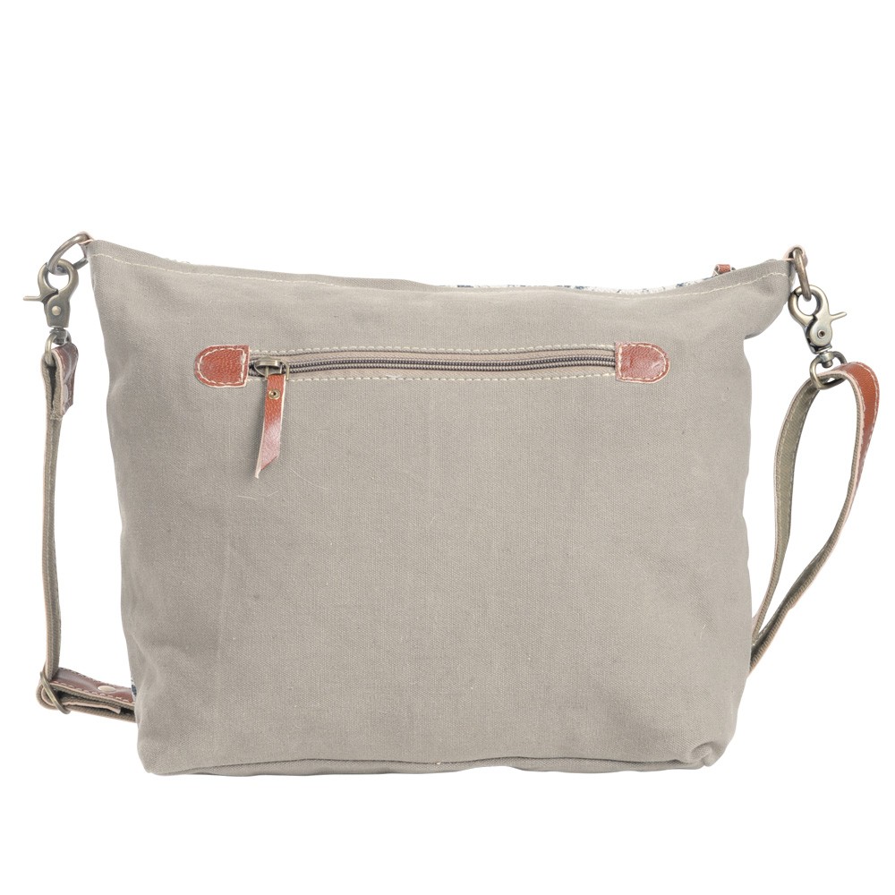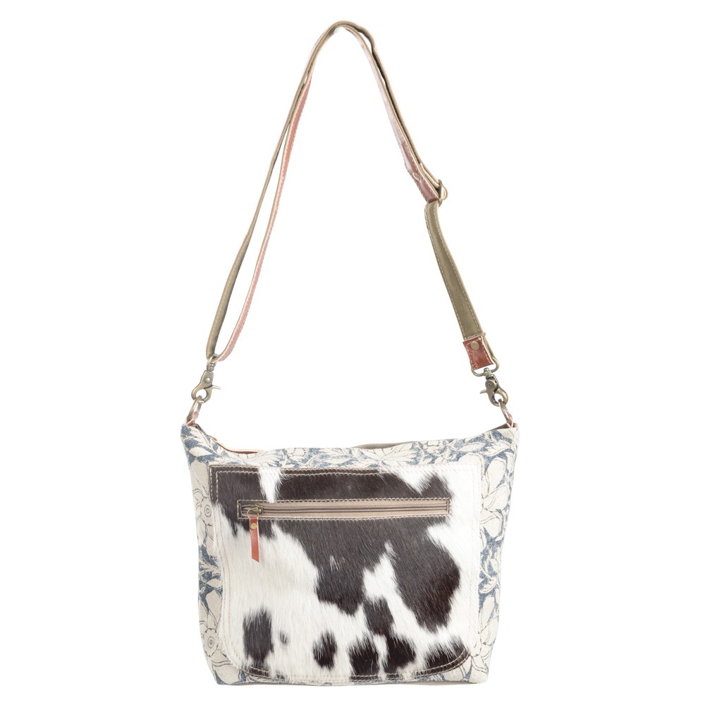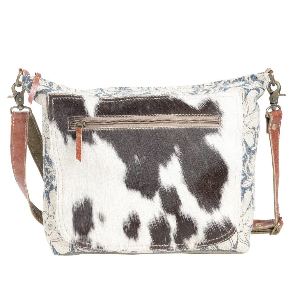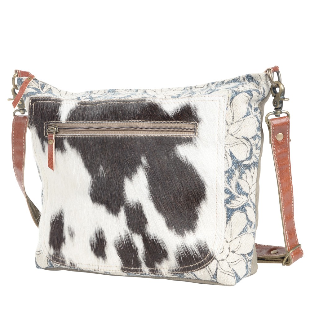 FLOWER PATTERN RECYCLED RUG WITH COWHIDE CROSSBODY