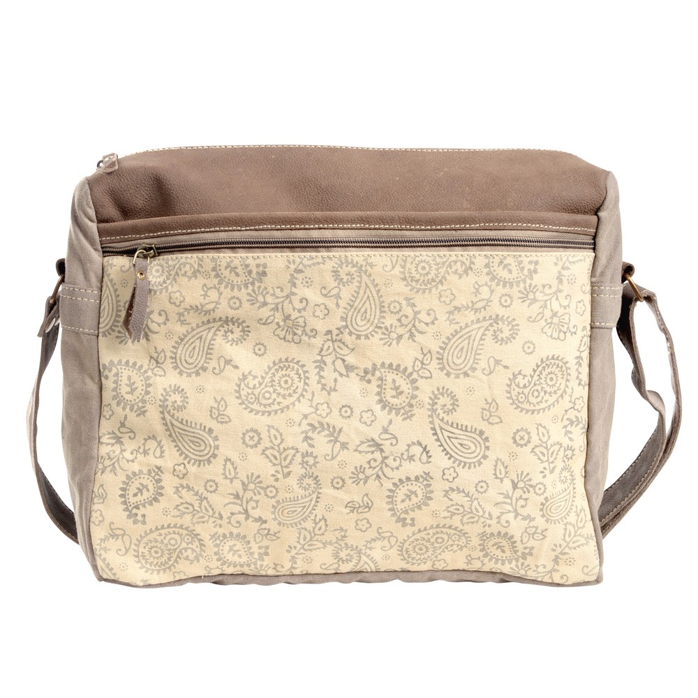 Paisley Canvas Bag w/ Front Zipper Pocket