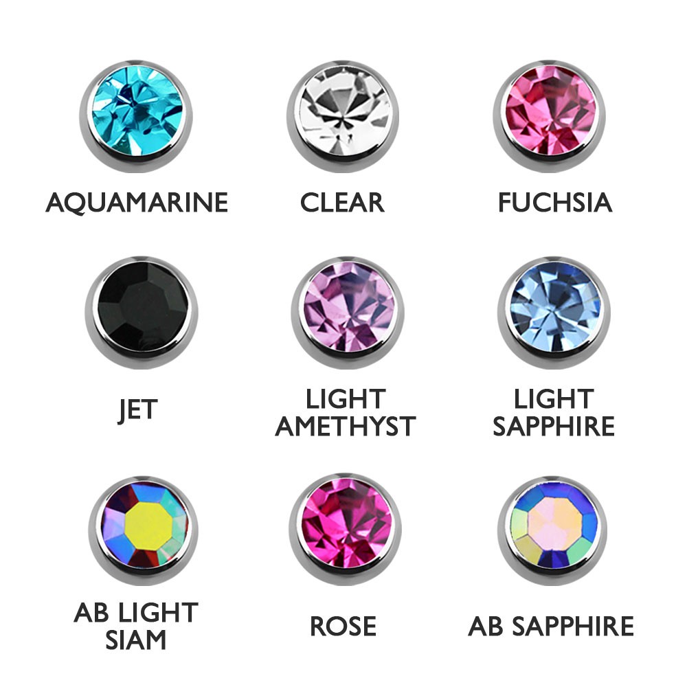 14G (1.6mm) with 5mm ball and 6mm jewel