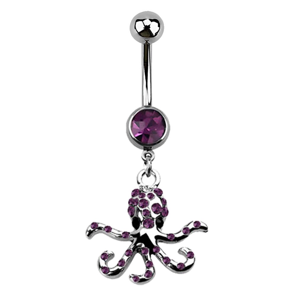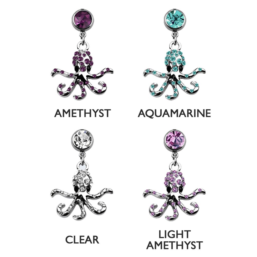 14G (1.6mm) with 8mm jewel and octopus dangle