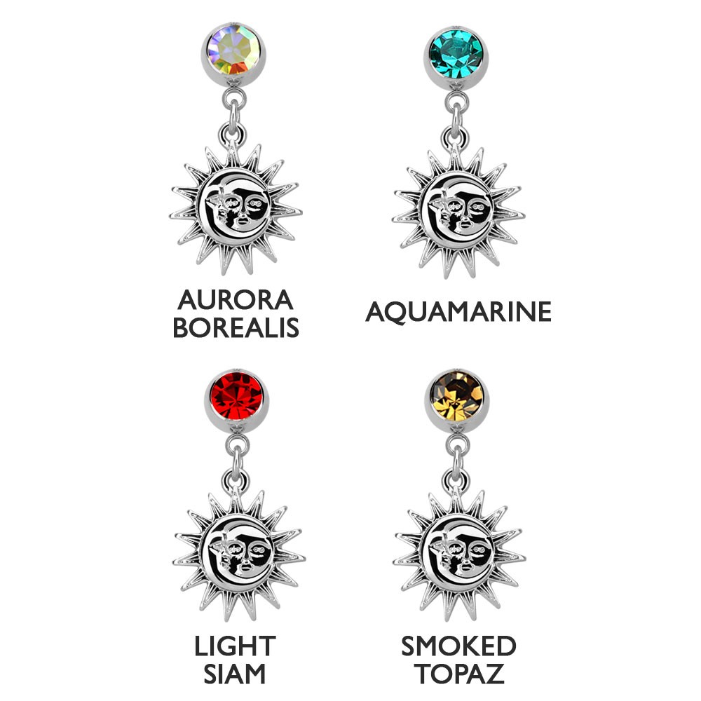 14G (1.6mm) with 8mm jewel and sum/moon dangle