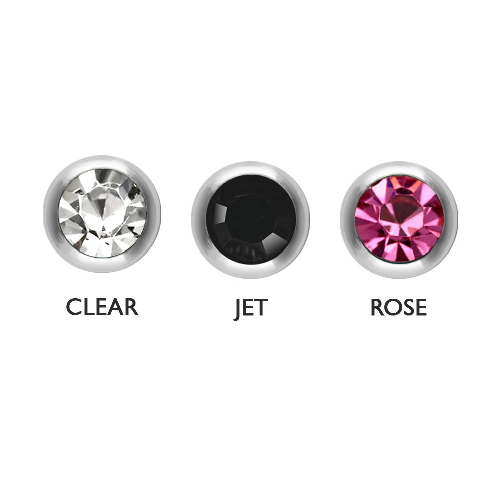 14G (1.6mm) with 8mm jewel ball and skull dangle