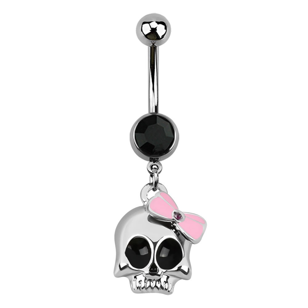 SURGICAL STEEL BELLY BANANA WITH SKULL DANGLE