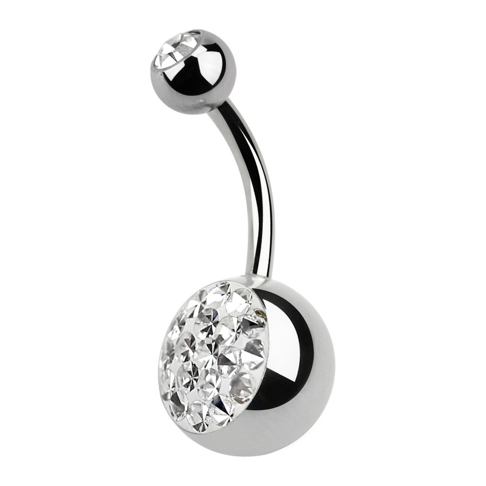 SURGICAL STEEL BELLY BANANA WITH LARGE CRYSTAL BALL