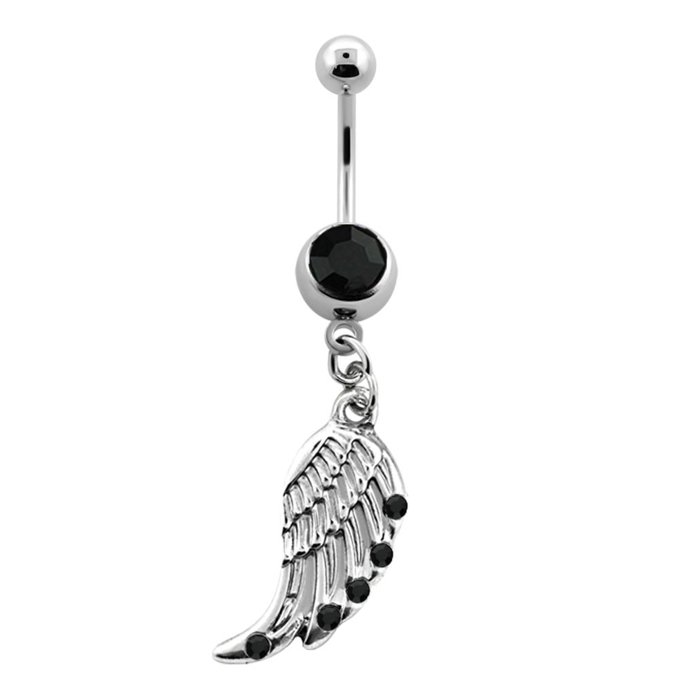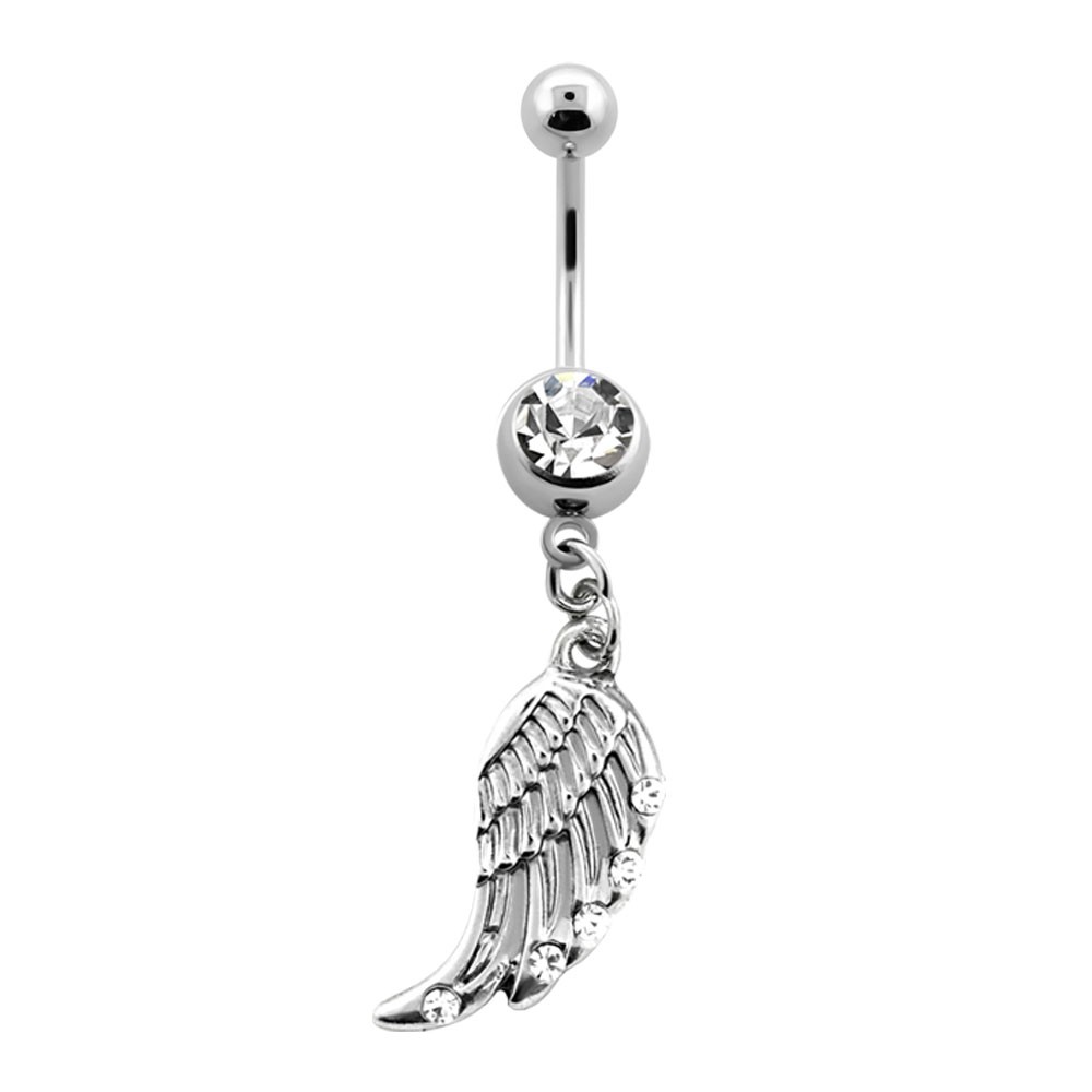 14G (1.6mm) with 8mm jewel ball and bird wing dangle