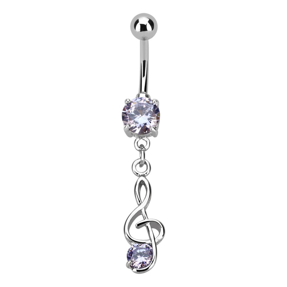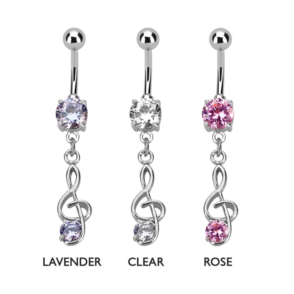 14G (1.6mm) with 8mm jewel ball and treble clef dangle