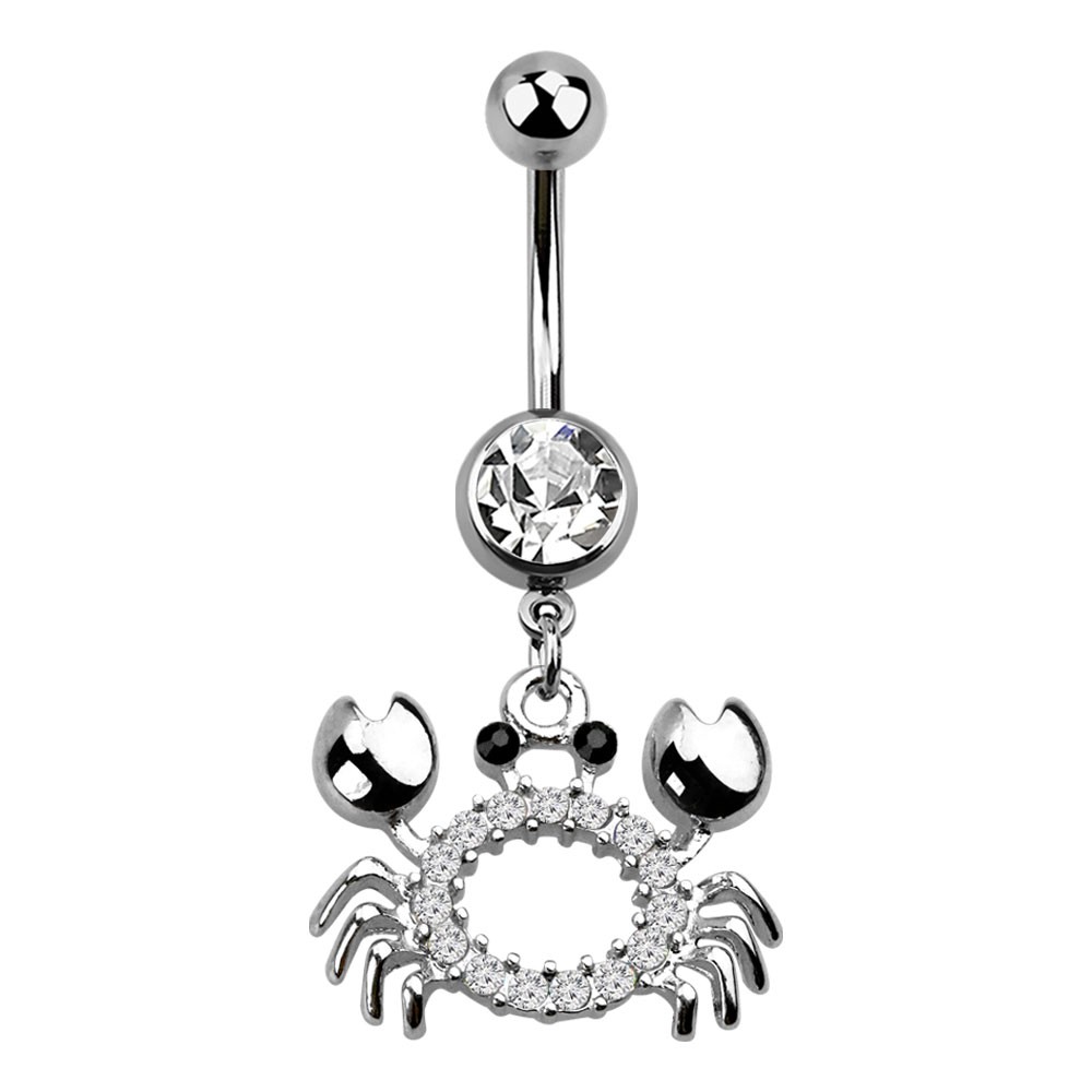 14G (1.6mm) with 8mm jewel ball and crab dangle