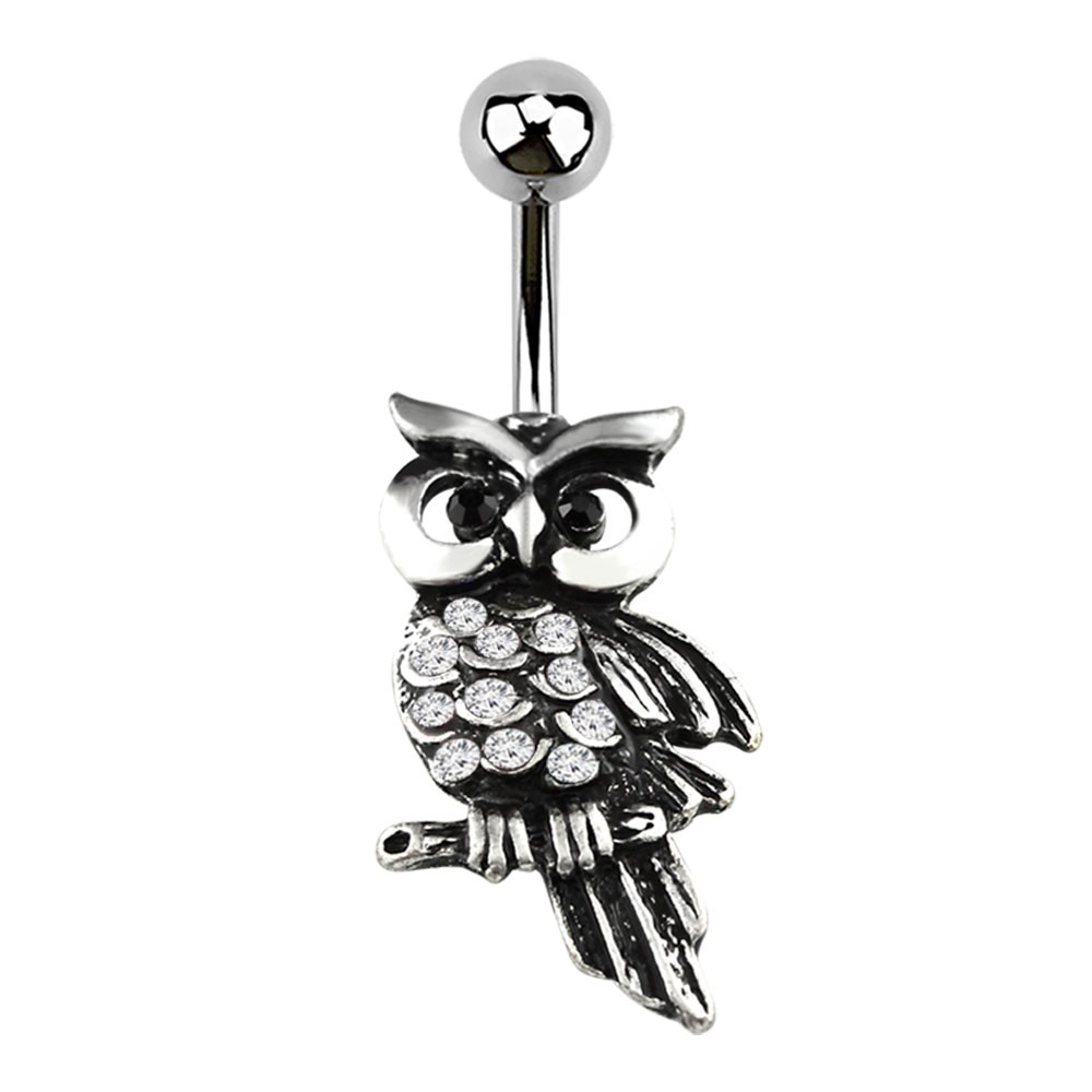 BANANA BELLY RING WITH OWL AND CRYSTALS