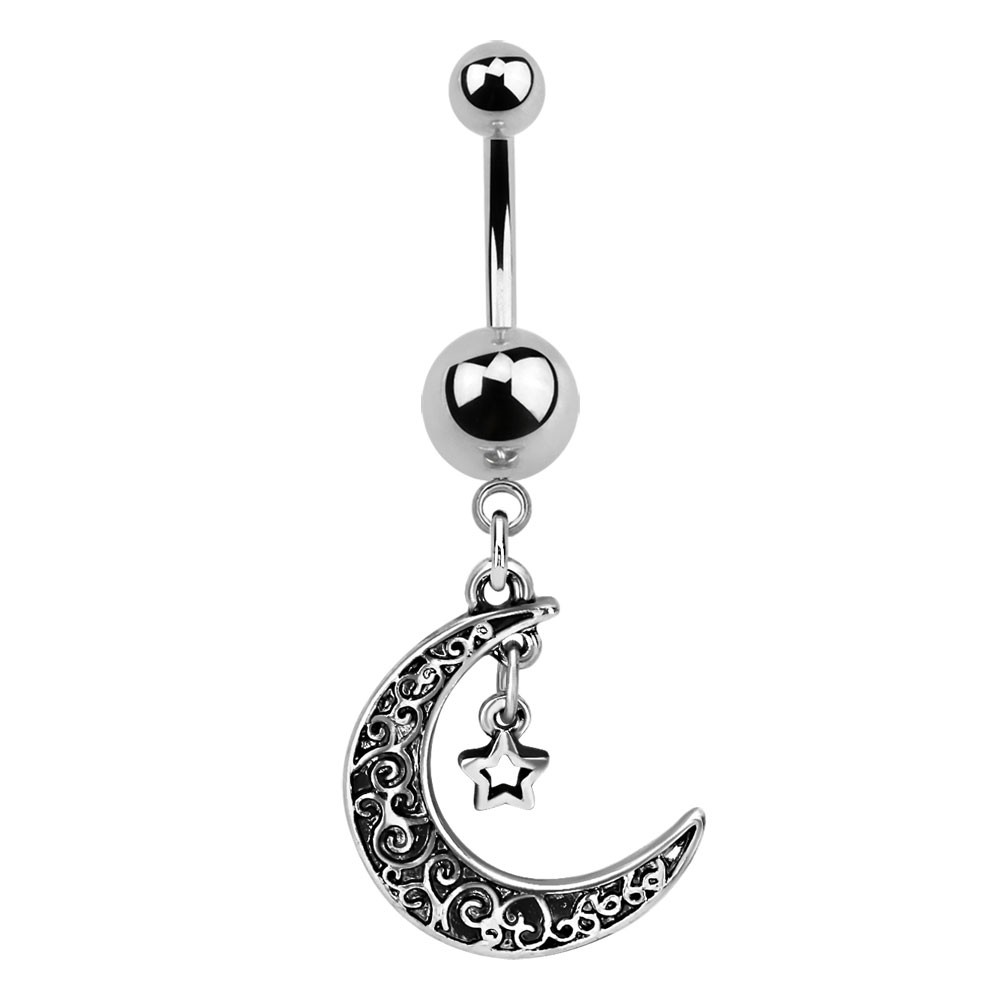 SURGICAL STEEL BELLY BANANA WITH MOON DANGLE
